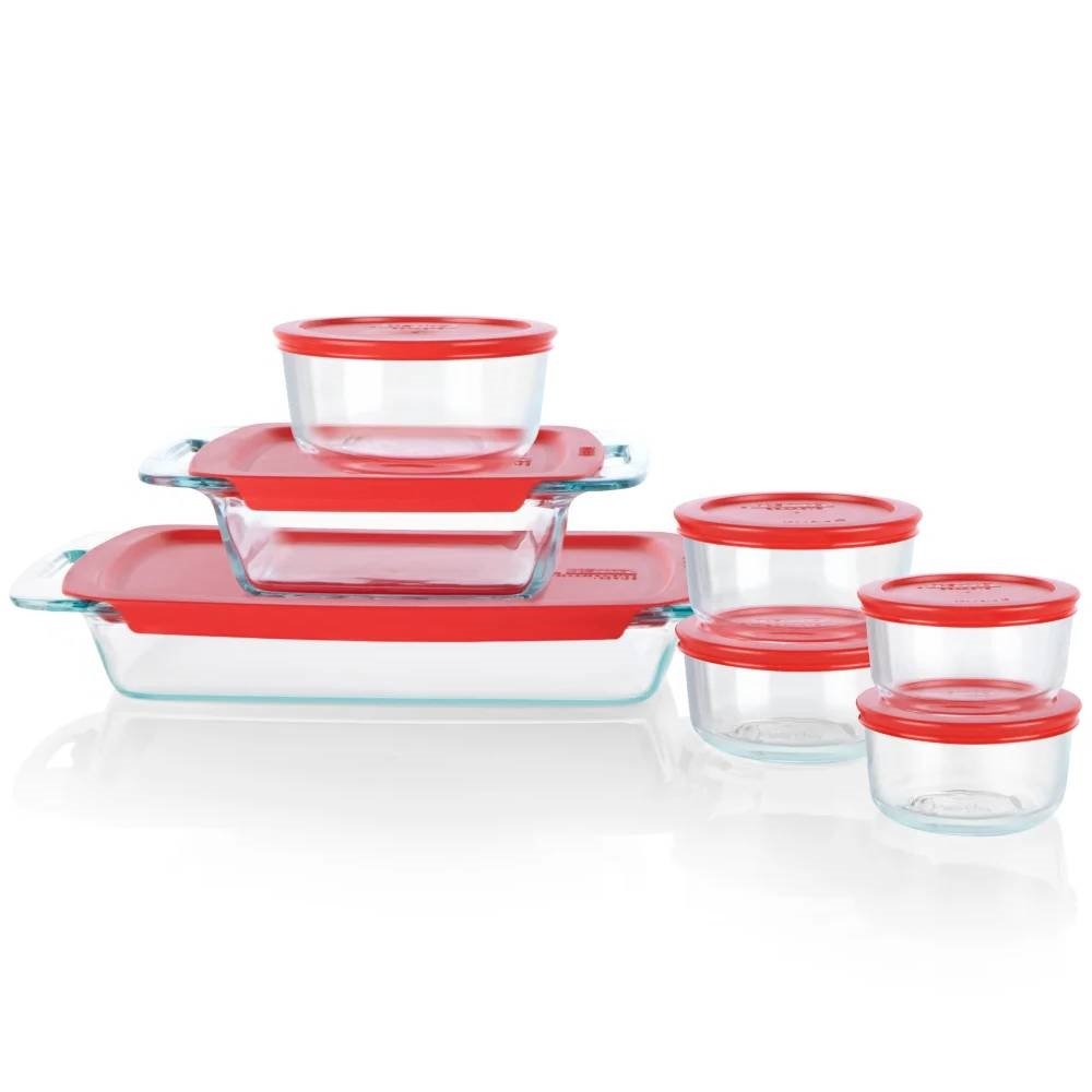 14-Piece Glass Bakeware Food Storage Container Set with Red Plastic Lids 14-Piece Glass Bakeware Food Storage Container Set with Red Plastic Lids