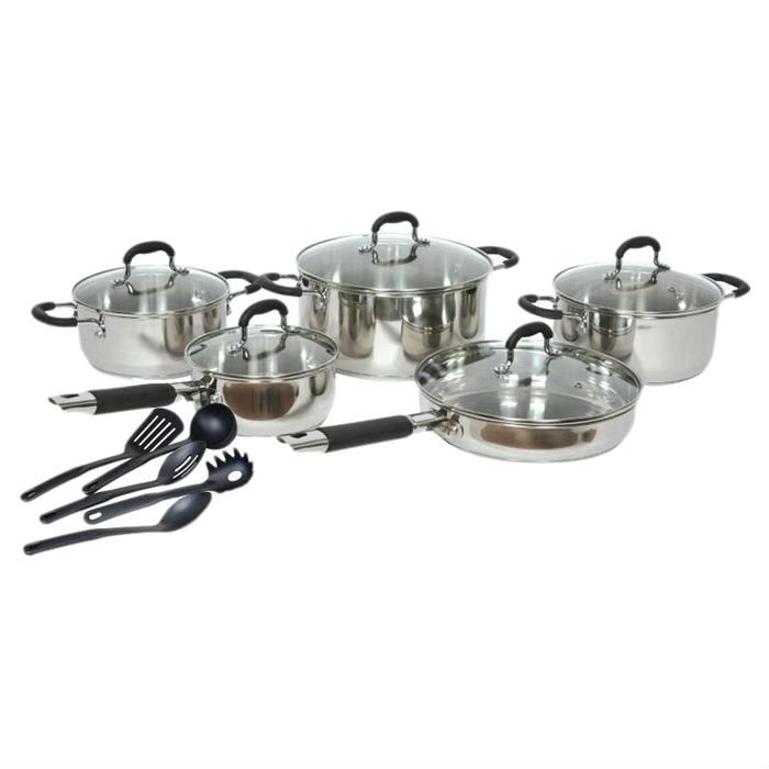 • 15-Piece Stainless Steel Cookware Set with Nylon Utensils