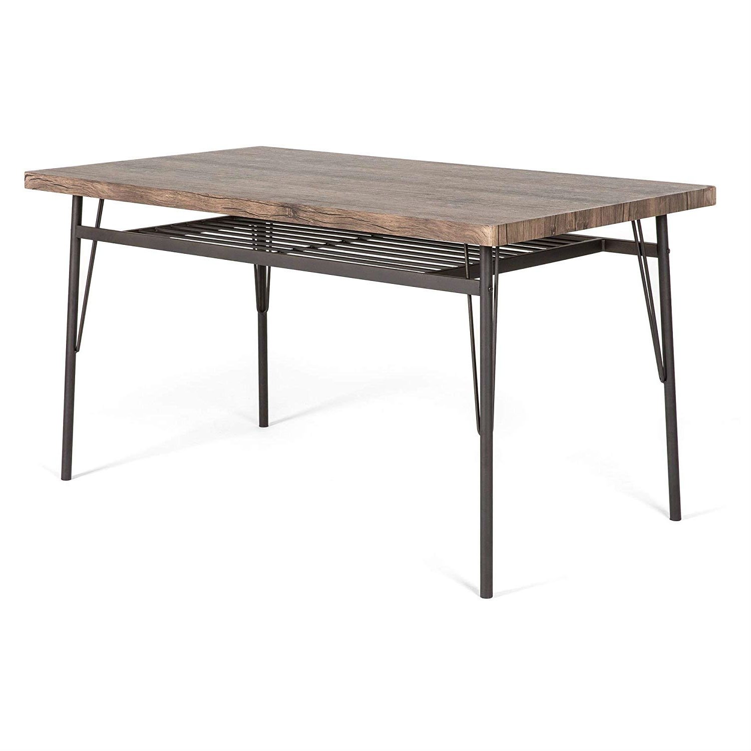 Enjoy modern dining and functional storage all in one. This 6-piece dining set seats up to 6 with a spacious tabletop for family meals and friendly gatherings. The simple design and beautifully finished surface blend seamlessly into any setting. Crafted with convenience in mind, the table and bench each have a storage rack to hold accessories like table mats, coasters, or seat cushions. Once you've finished dinner, switch out the table mats for some board games from the storage rack and enjoy some friendly fun!