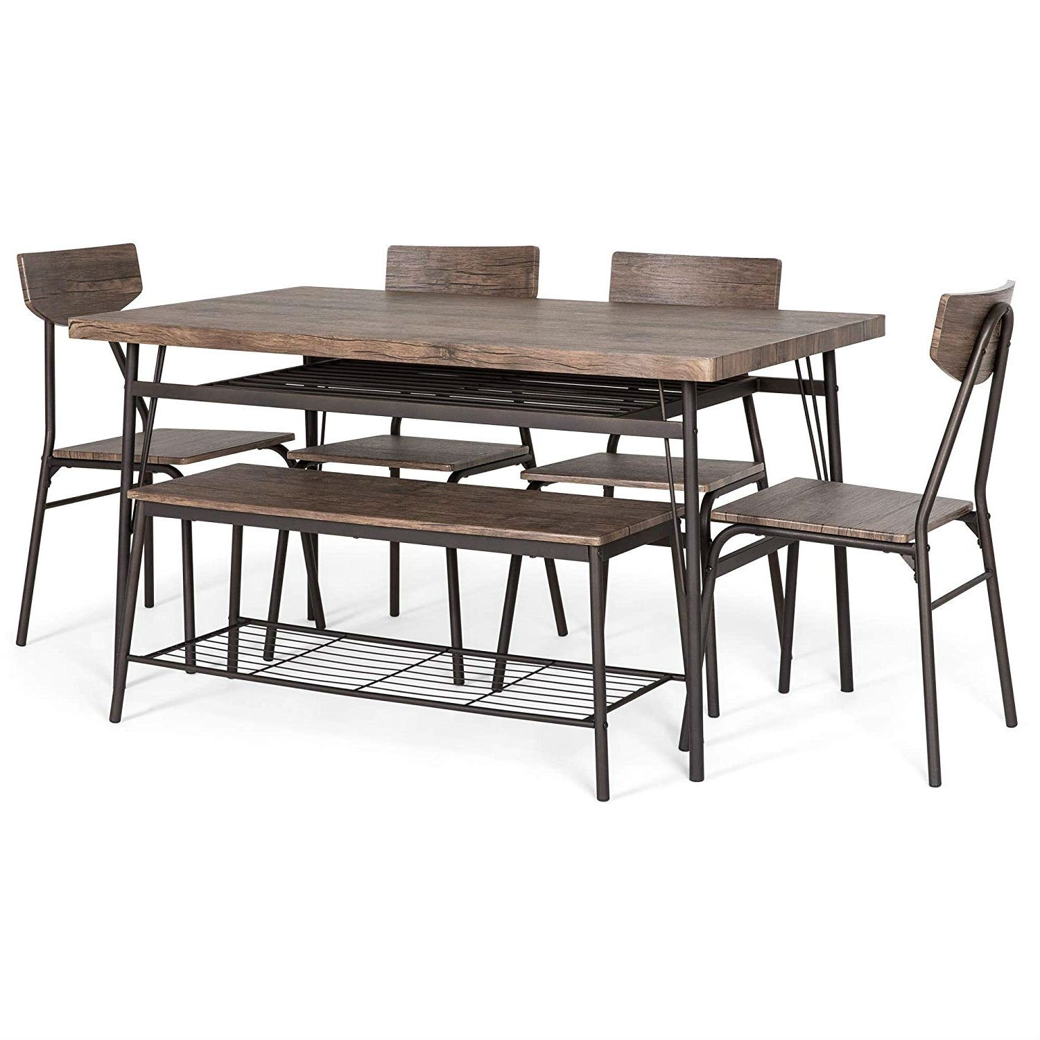 6-Piece Brown Wooden Dining Set with 4 Chairs Bench and Storage Racks 6-Piece Brown Wooden Dining Set with 4 Chairs Bench and Storage Racks 6-Piece Brown Wooden Dining Set with 4 Chairs Bench and Storage Racks 6-Piece Brown Wooden Dining Set with 4 Chairs Bench and Storage Racks 6-Piece Brown Wooden Dining Set with 4 Chairs Bench and Storage Racks