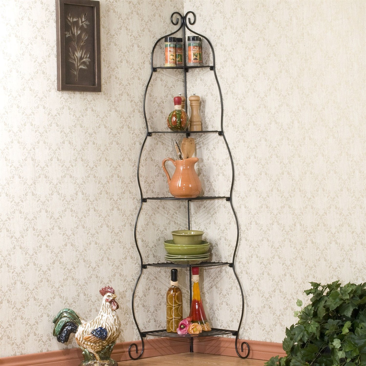 Corner Bakers Rack 5-Tier Shelves with Decorative Metal Scrollwork Corner Bakers Rack 5-Tier Shelves with Decorative Metal Scrollwork Corner Bakers Rack 5-Tier Shelves with Decorative Metal Scrollwork
