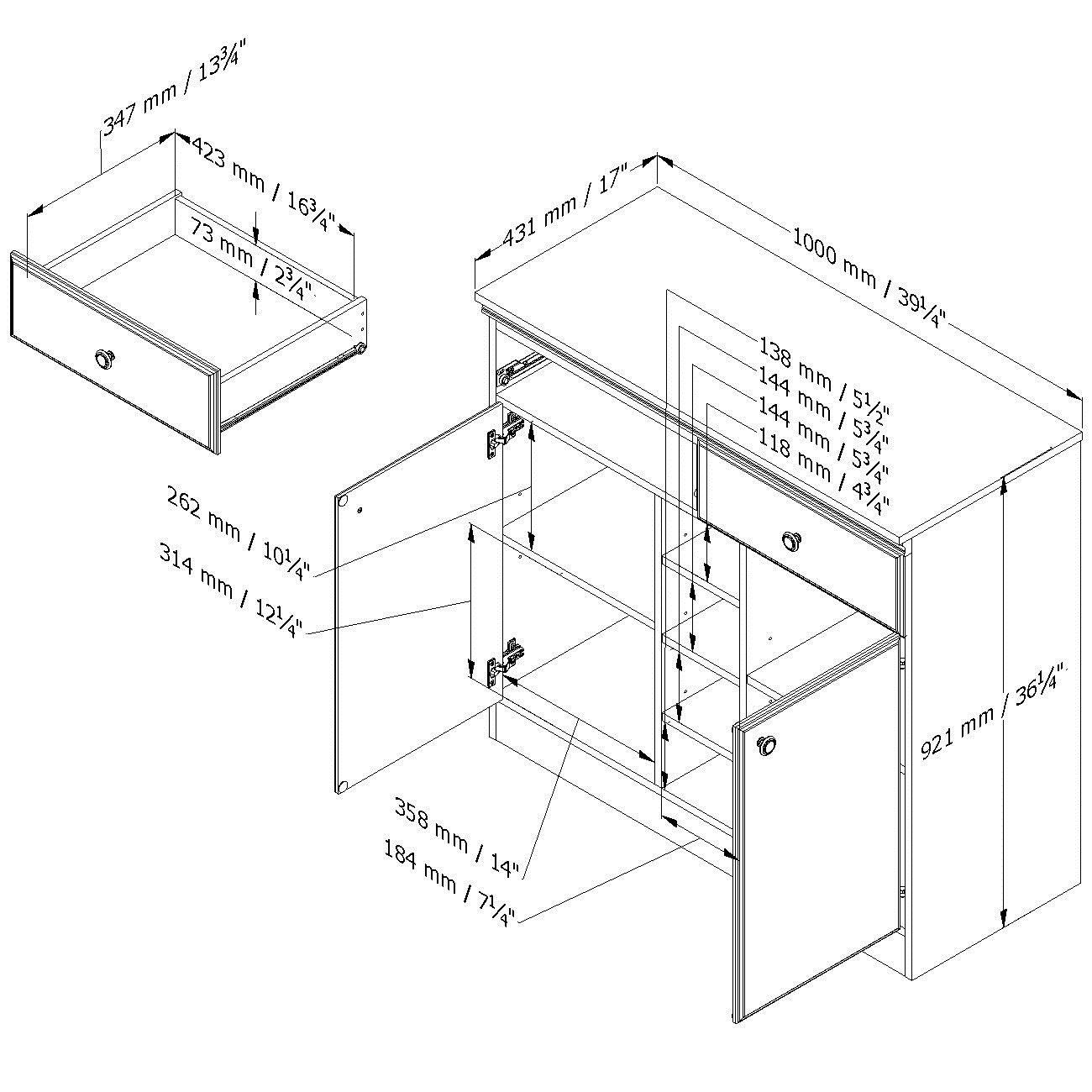 • 2 Closed storage spaces behind each door, separated by 1 adjustable shelf (can support a weight up to 15 lbs)