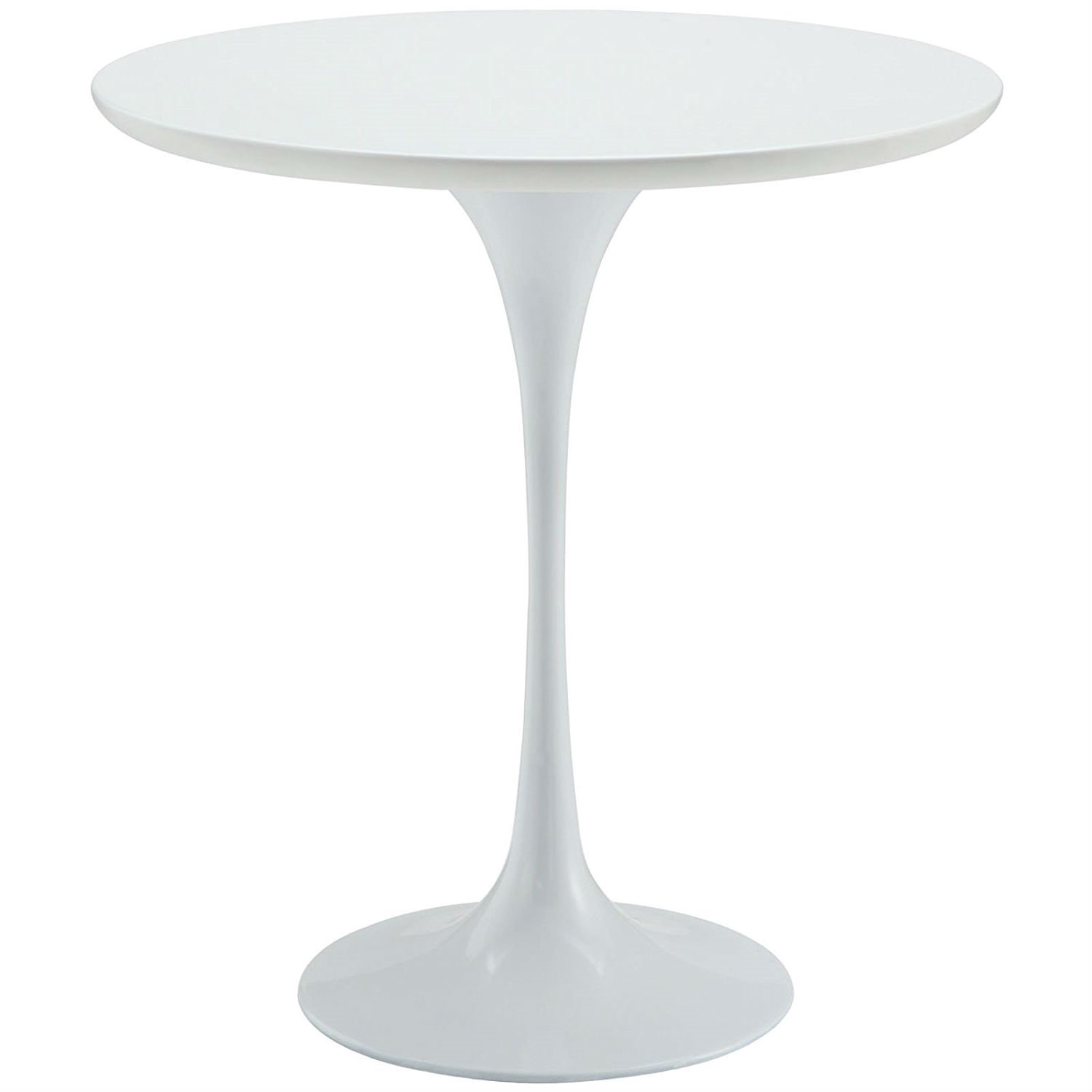 Reflecting a seamless organic shape and timeless form, this Mid Century Modern Classic 20-inch Round Side Dining Table in White has become a symbol of modernism for over the past 60 years. Before its release, homes were filled with clunky remnants of an industrial age long gone by. But in order to advance into the new world, homes first had to transition from the traditional square table, into a piece that connoted progress. The cast aluminum base and dimensions are true to the original specifications, while the tableís circular top, and tapered base, are carefully lacquered with a chip resistant finish.