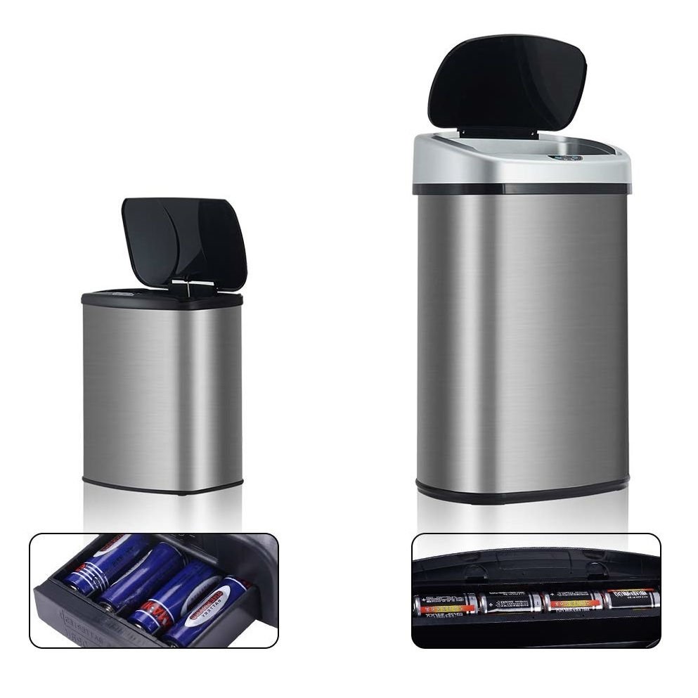 • Without the restriction of power lines, you can put these trash cans anywhere because it is battery powered ( batteries are not included)