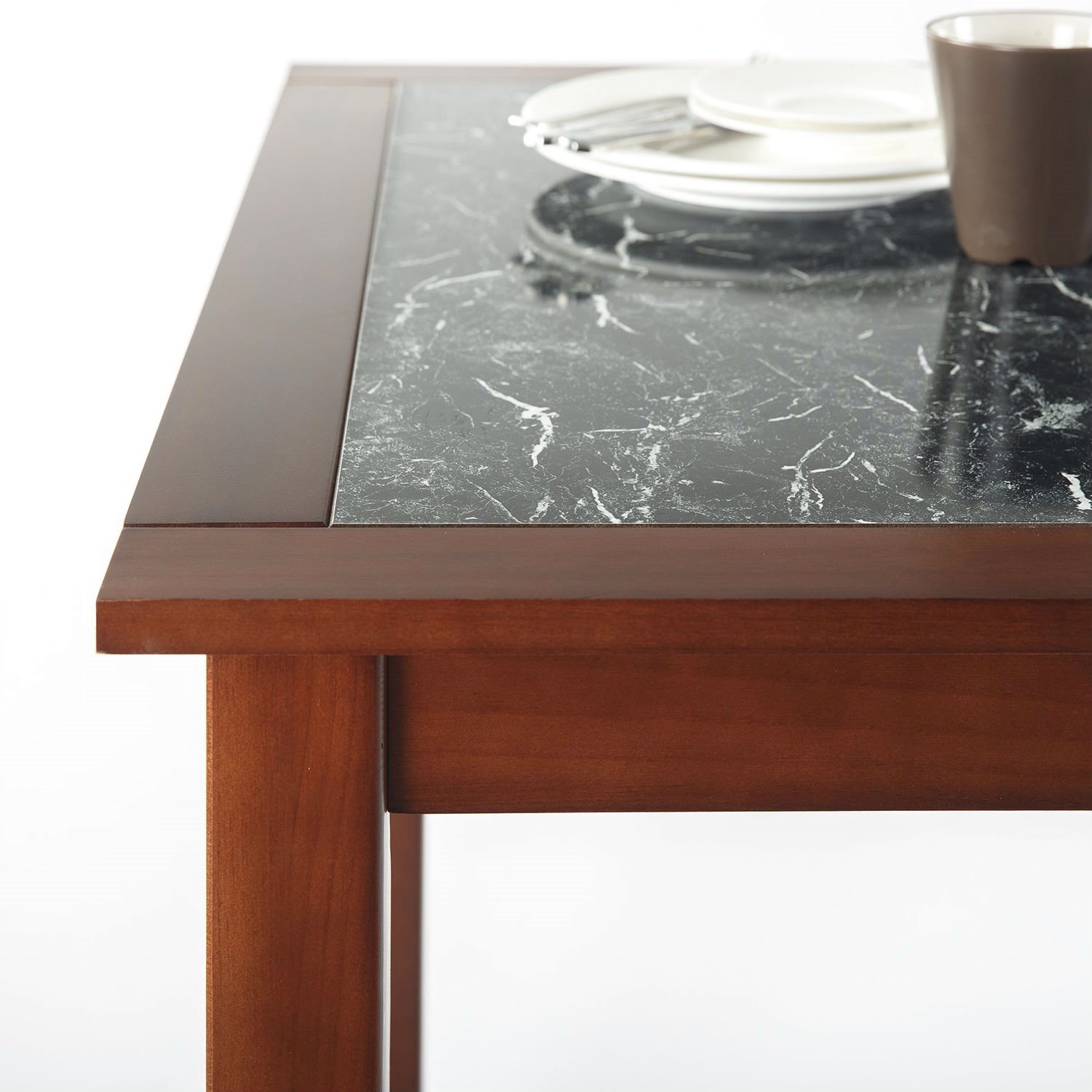 This Rectangular 48 x 36 inch Brown Wood Dining Table with Faux Marble Top is beautifully designed to add a touch of luxury to your dÈcor. Easy to assemble in minutes with sturdy wood frame and legs for durability and long lasting use. The faux marble top is both durable and beautiful. Worry free limited 1 year warranty.