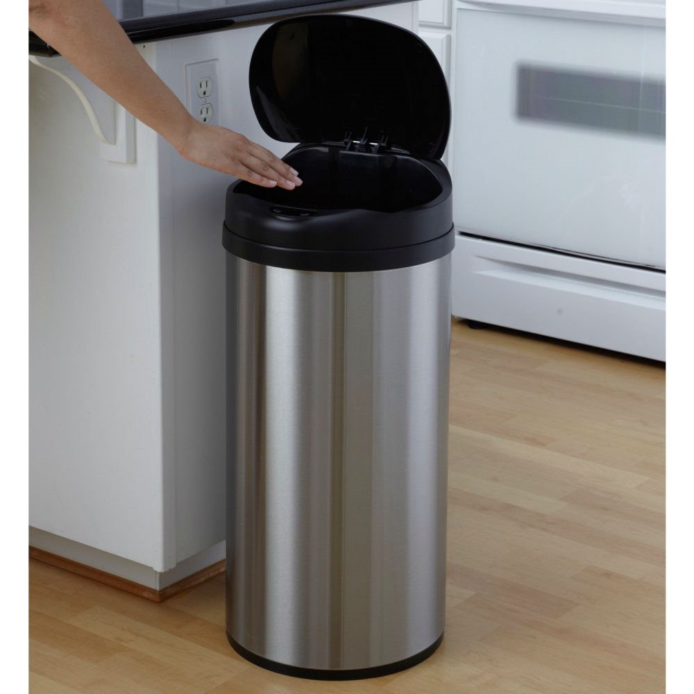 Round Stainless Steel 13-Gallon Touchless Kitchen Trash Can Round Stainless Steel 13-Gallon Touchless Kitchen Trash Can