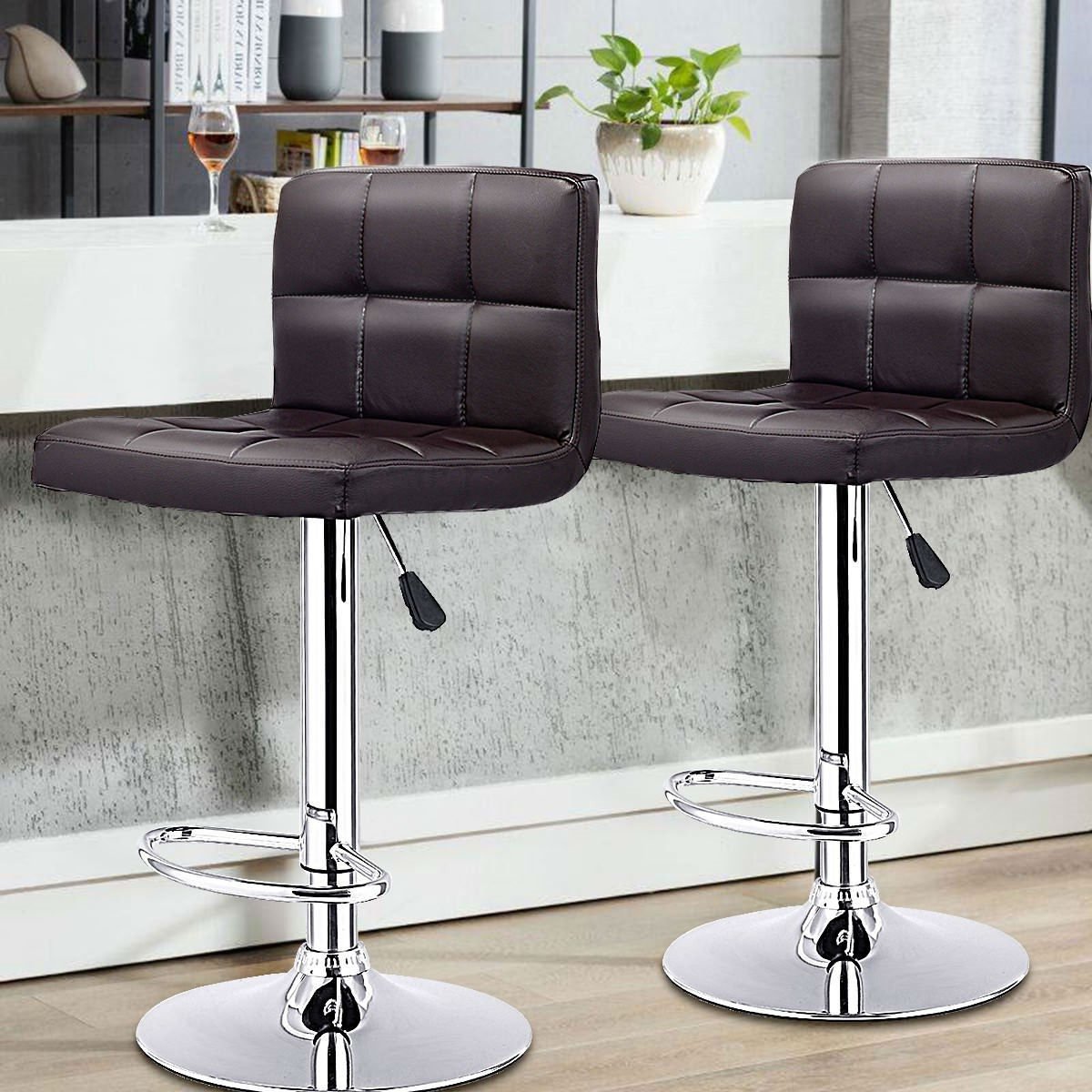 Set of 2 Brown Faux Leather Swivel Bar Stools Pub Chairs Set of 2 Brown Faux Leather Swivel Bar Stools Pub Chairs Set of 2 Brown Faux Leather Swivel Bar Stools Pub Chairs