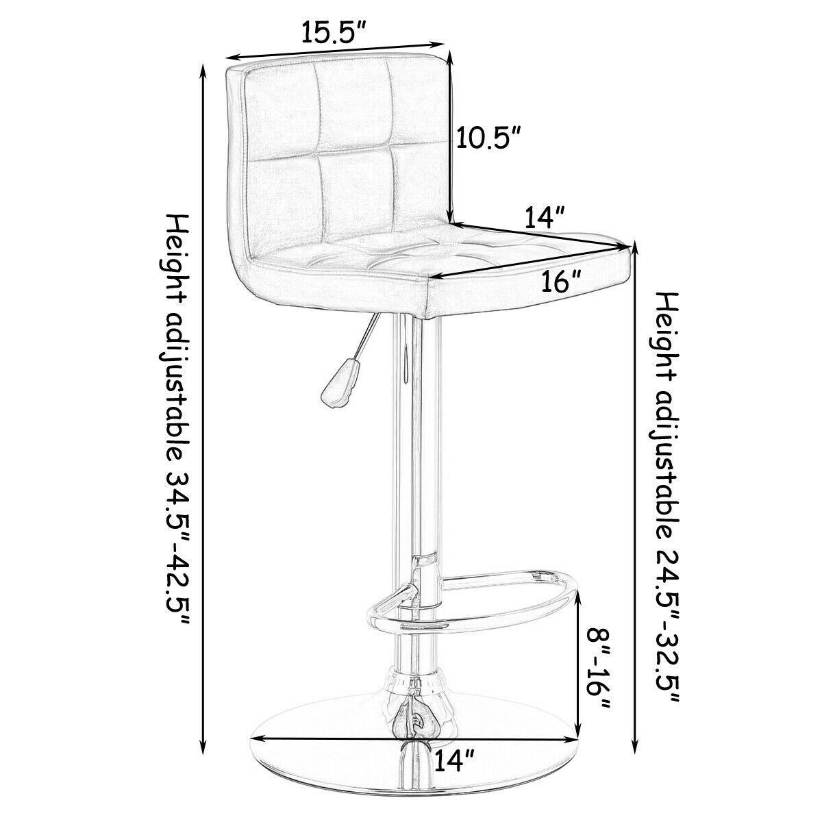 • Height from seat to the floor: 24.4" - 32.2"