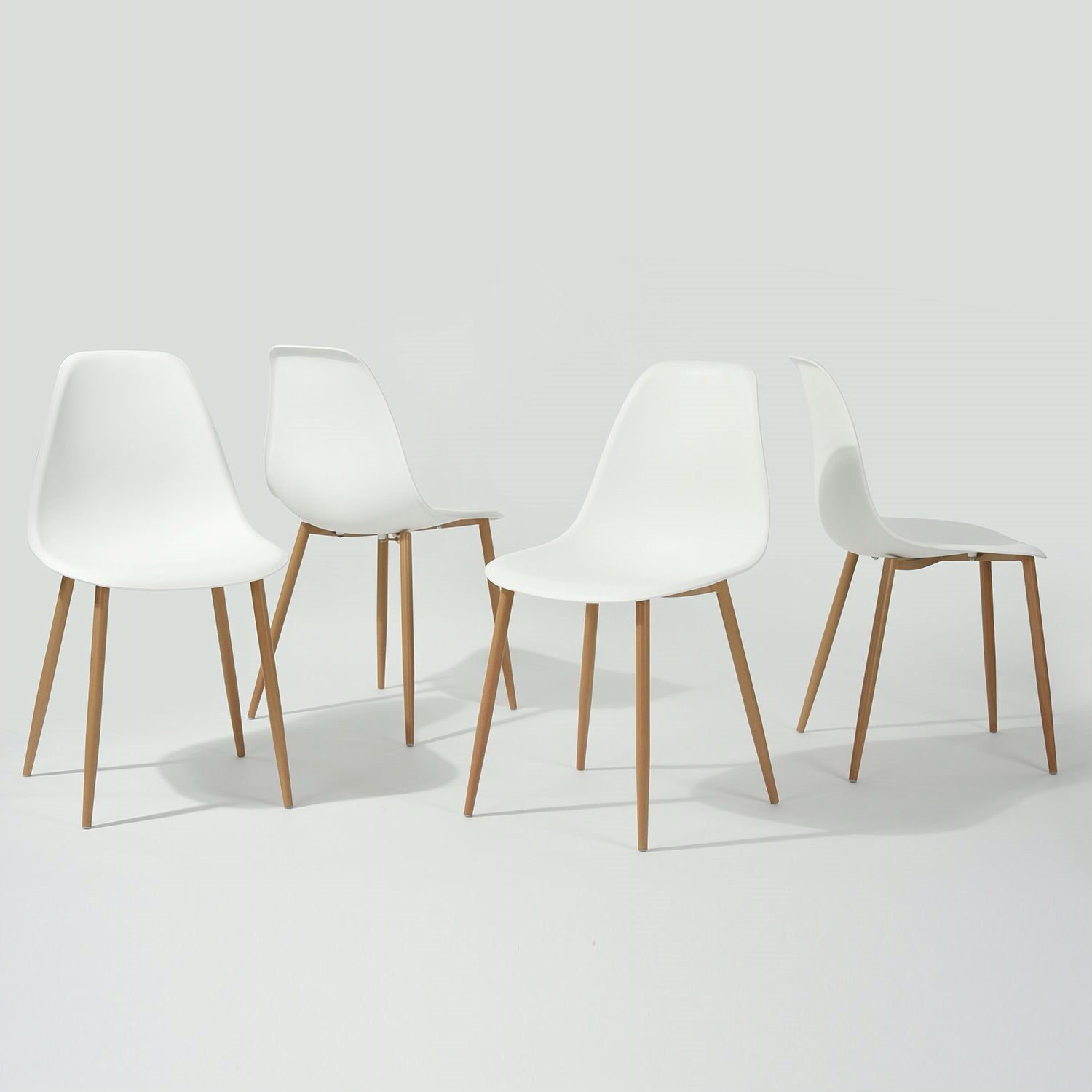 Set of 4 Modern Mid Century Style Dining Chairs in White with Wood Finish Legs Set of 4 Modern Mid Century Style Dining Chairs in White with Wood Finish Legs Set of 4 Modern Mid Century Style Dining Chairs in White with Wood Finish Legs
