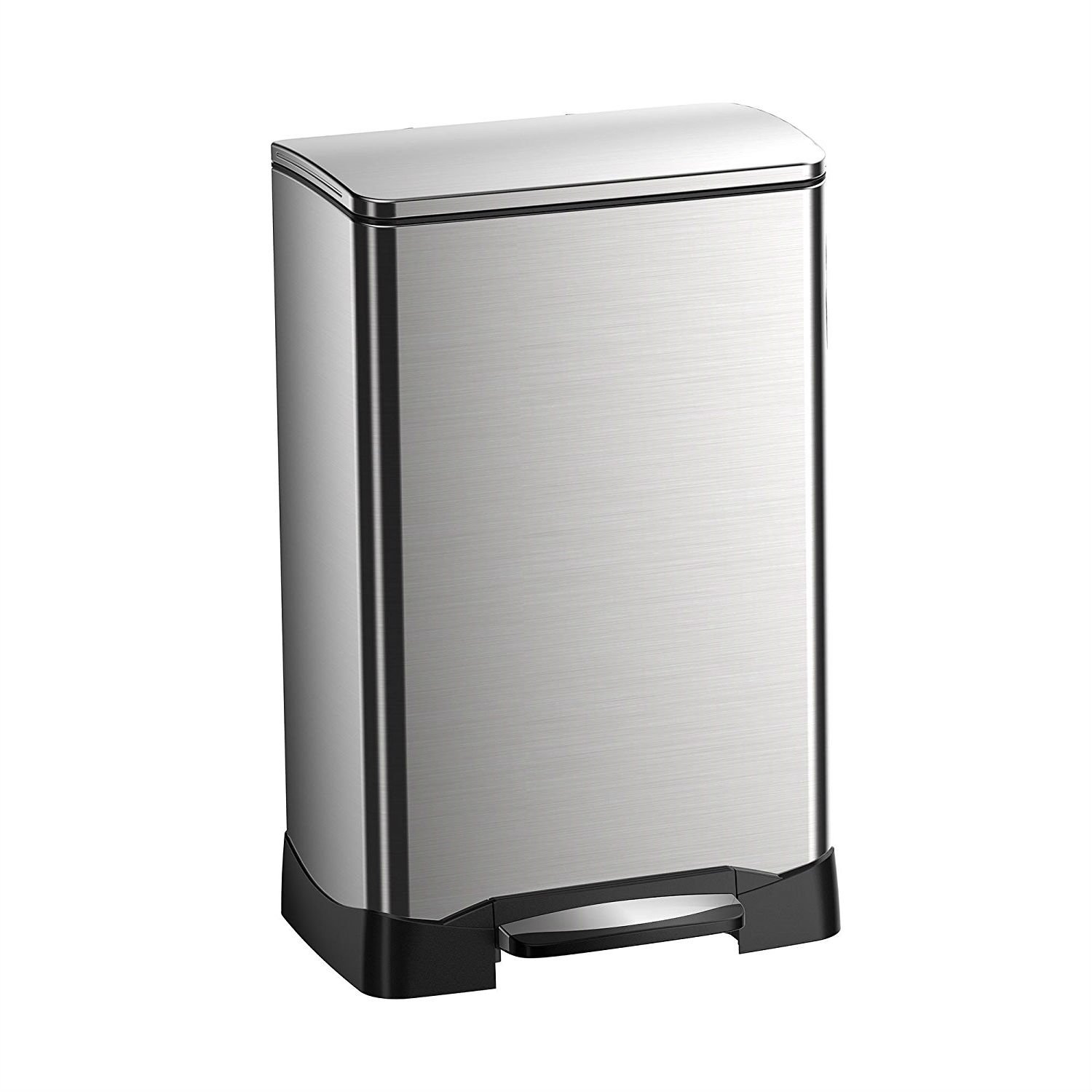 This Stainless Steel 10.5 Gallon Kitchen Trash Can with Step Pedal No Hands Lid is the modern cousin of your grandmother's waste bin. A step pedal at the bottom effortlessly open the lid, providing hands-free access to your waste bin-reducing mess and bother after meals, during projects and any other time you have something to toss. The attractive bin features soft-close: the quiet, gentle release of the bin's lid that automatically closes the bin without any help from you, so your family's hands stay clean. When it's time to take out the trash, simply lift the protective bin liner out of the shell. The removable shell makes cleaning your waste bin quicker, easier and more efficient. Then, effortlessly replace the trash bag and secure it to the liner with the built-in bag secure, a push secure that grips the bag to prevent unsavory slips and spills. And to freshen the experience even more, the Stainless Steel 10.5 Gallon Kitchen Trash Can with Step Pedal No Hands Lid features a built-in deodorizer receptacle, so odor has no chance. This cube trashcan is 25.6 Inch high, 15.87 Inch wide and 13.58 Inch deep.