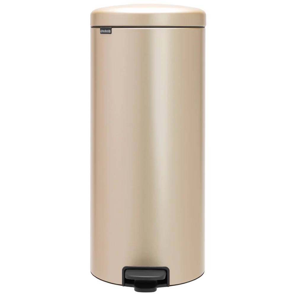 This Stainless Steel 8-Gallono Kitchen Trash Can with Step On lid in Champagne Gold has plenty of capacity for a busy family home. A great choice for the kitchen or your hobby room. The newIcon step cans are not only iconic beauties, but theyíre reliable workers too. Thanks to the unique soft-closure feature, the lid closes smoothly and very quietly.