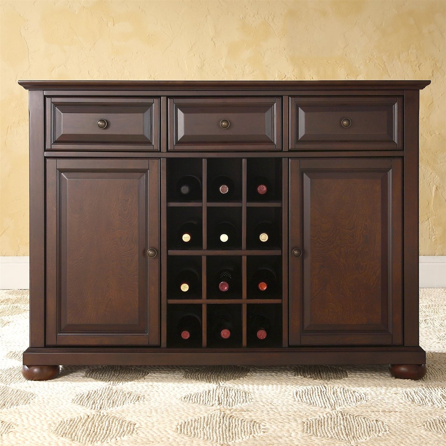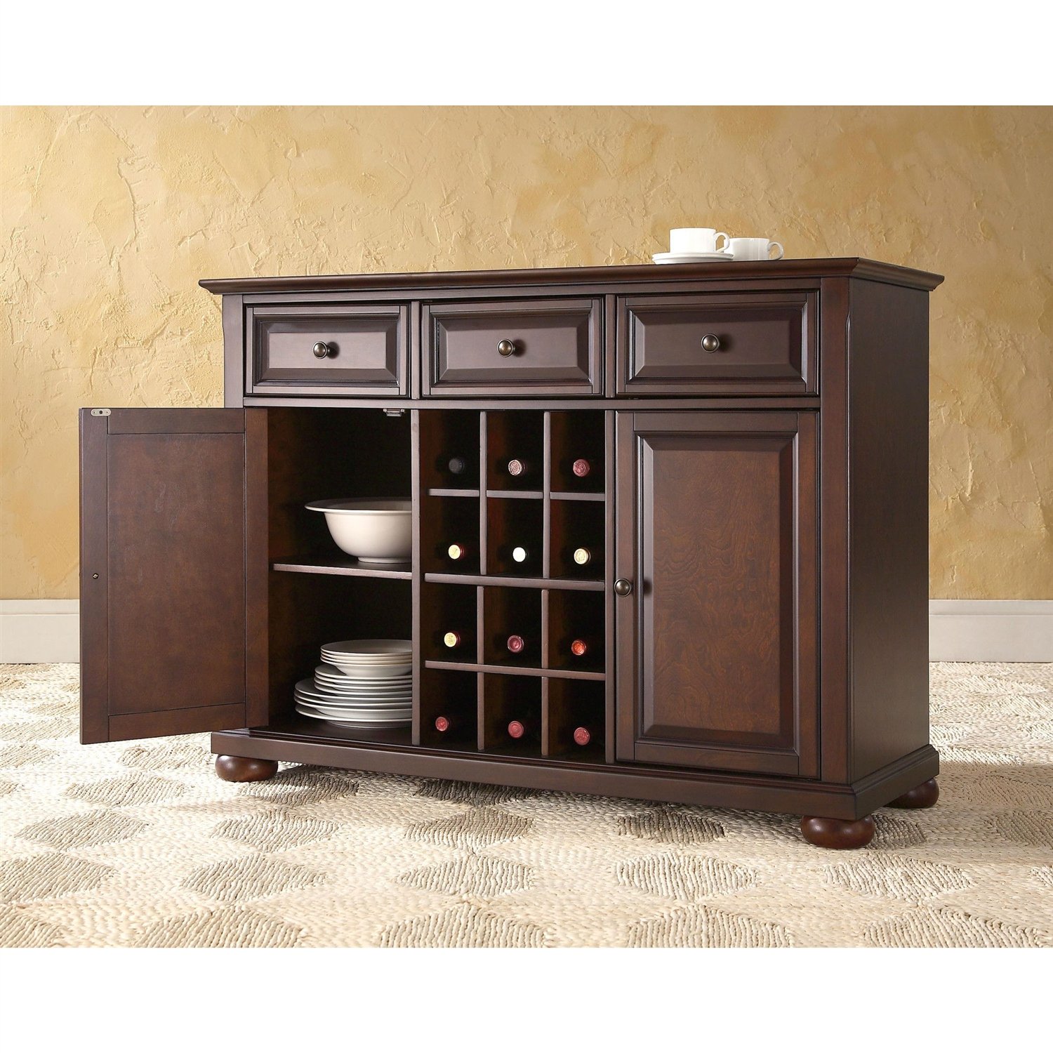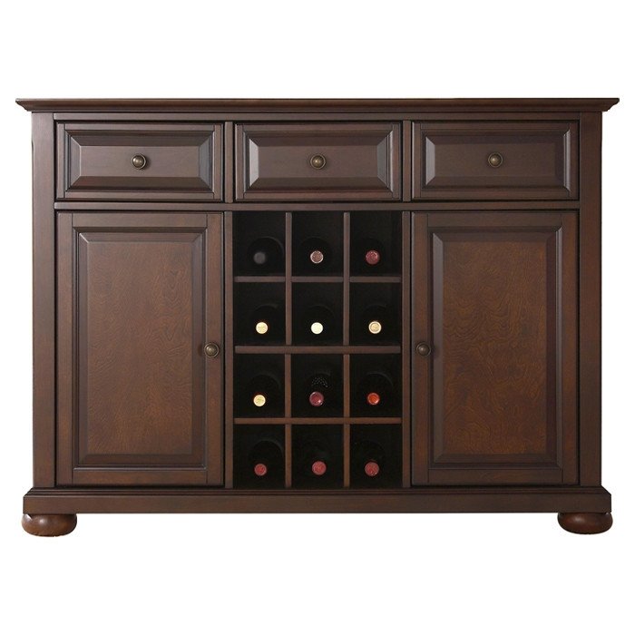 The smart design of this Vintage Mahogany Dining Room Organizer Sideboard Buffet Server Table generates tons of smart space to tuck, organize and store your serving needs. This clever buffet showcases your wine collection with an open-air twelve bottle storage area front and center. If wine isnít your thing, you can remove the cross hatch shelves, leaving you with two shelves perfectly suited to display serving bowls, vases, glasses and more.The fully finished back allows you to place this against a wall or in the open and still look magnificent from all angles. Use a soft clean cloth that will not scratch the surface when dusting. Use of furniture polish is not necessary. Should you choose to use polishes, test in an inconspicuous area first. Use of solvents of any kind may damage your furnitureís finish. To clean, simply use a soft clean cloth moistened with lukewarm water, buff with a dry soft clean cloth.