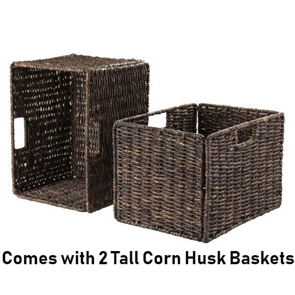 This Walnut 3 Piece Cabinet Cupboard Storage with 2 Foldable Baskets is versatile for use in bathroom for storing linens, in the office for supplies, in the living room for multimedia and in so many other ways. Perfect for any room and dÈcor. Elegant cupboard has one wood door opens to a storage with one shelf and top proton has two open storage cubes. Constructed with solid and composite wood in warm walnut finish. Assembly is Required.